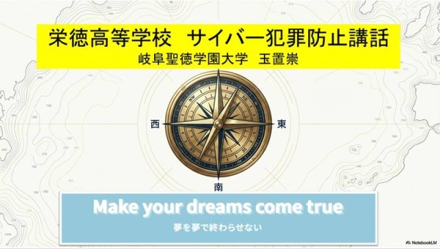 8時30分頃に家を出て、私立栄徳高等学校へ向かう。9時15分頃に到着。しばし時間調整をして校内へ。今日は栄徳高等学校1年生に向けてサイバー犯罪防止講話の依頼を受けての訪問。控室で懇談。