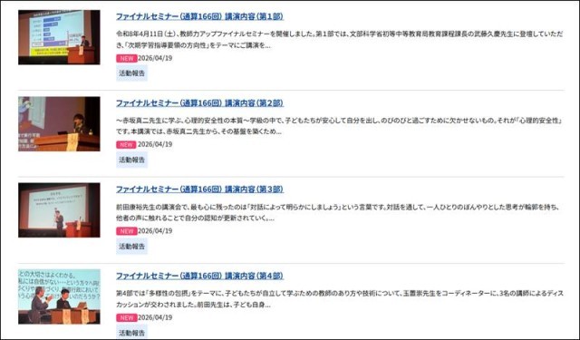 4月11日の教師力アップファイナルセミナーの記事が発信された。。4部報告記事を書いたのは、それぞれかつてのゼミ生。この取組も今回で最終。福地ゼミからは新たに2名からのセミナー感想が届く。反響は続いている!