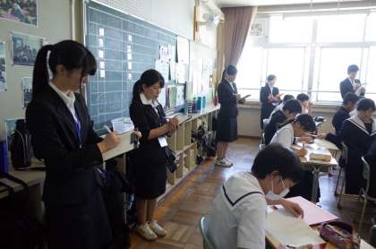 今回見せてもらったクラスの授業形態は少し変わっていました。先生は指名等をせず、意見を言いたい生徒が自主的に立って話すという授業スタイルでした。