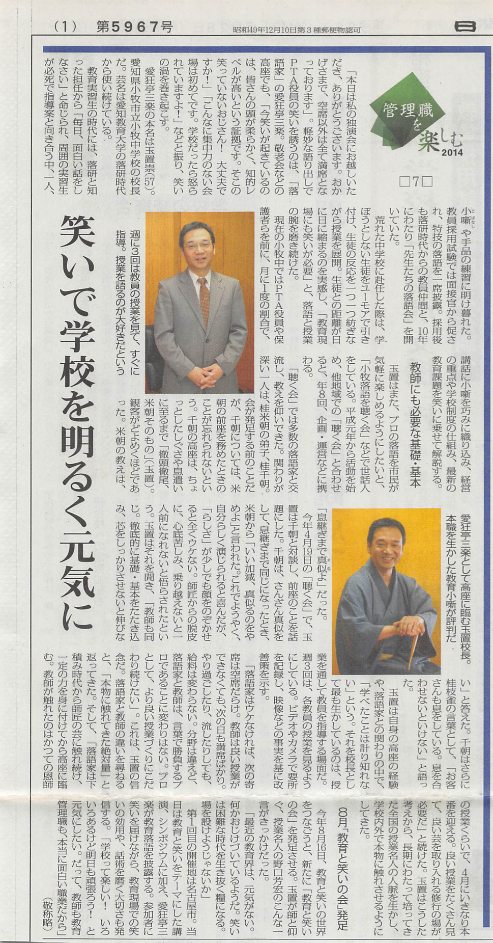 日本教育新聞掲載「管理職を楽しむ」(2014年掲載)