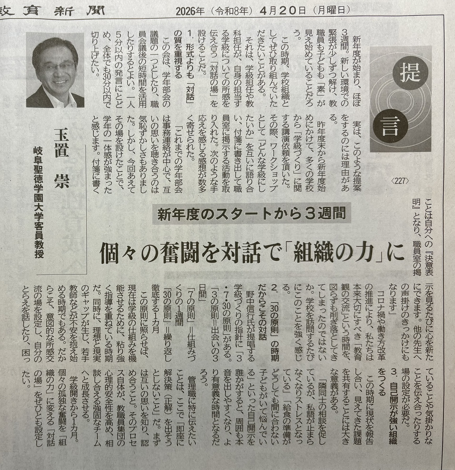 「ある本屋に入って、何気なく1冊引き出したら、この本でした。先生とのつながりがある、運命を感じました」と嬉しいコメント。随分前に発刊した本だが、まったく色あせていないと思っている。まさに僕の授業づくりの原点。それを手にしてくれたことが嬉しい。