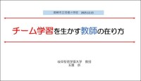 15時30分から40分間は僕が話す時間。演題は「児童の思考を促す主体的・対話的で深い学びをもとめて ~「たい!」を引き出し学びをつなぐ~」。今回は4月に届いた今年度の研究要項から「黒小バイブルの価値」を動画を入れながら伝える。黒小バイブルは、授業づくりの基本指針。これはどこの学校でも役立つ内容。授業者への助言は、「もっと子どもたちに教師の思いを感情豊かに語るとよい」という一言。これは最近の僕が繰り返している主張。