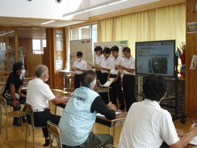 10月23日(水)の登校時に、6年生が取り組んでいる「防災マップ作り」の一環として、いきいきクラブの皆様に協力していただきました。登校する生徒とともに歩いていただき、通学路にある危険な箇所などを教えていただきました。その後、6年生の教室で調べたことをさらに詳しく教えていただきました。伊勢湾台風時の写真を見せていただくこともでき、大きな学びになりました。教えていただいたことを6年生が4年生に発表します。本当にありがとうございました。