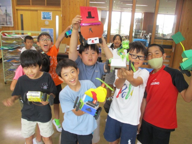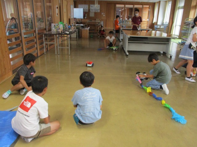 それぞれが思う夢の乗り物を作りました。実際に走らせてみて、出来栄えを確認していました。