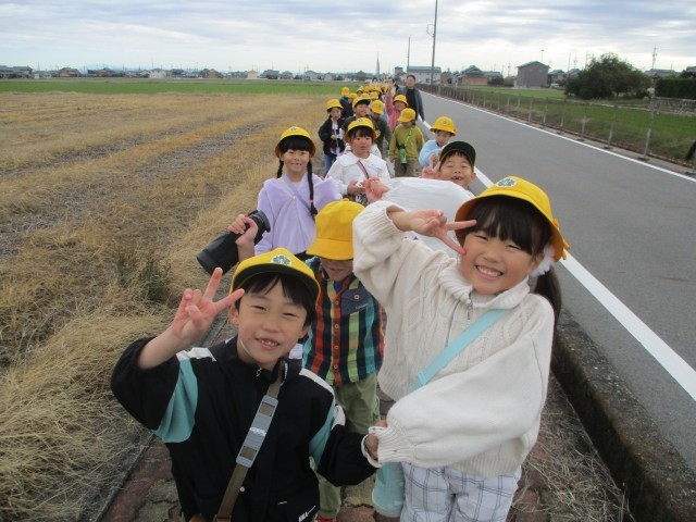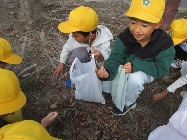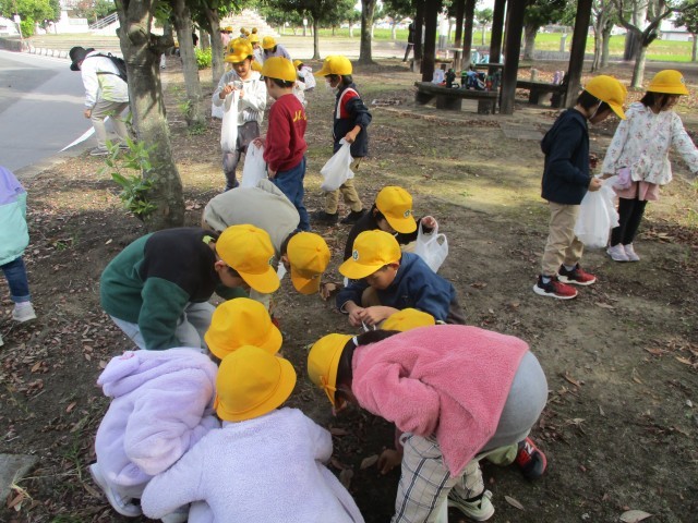 運動の森公園にどんぐりを拾いに行きました。長い道のりでしたがみんながんばって歩きました。たくさんのどんぐりが落ちていて、一生懸命に拾いました。拾ったどんぐりは生活科で使う予定です。