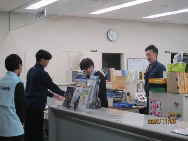 5日(水)に、あいさつ標語が記載されたポケットティッシュを、役場の各課の方々にお渡ししました。