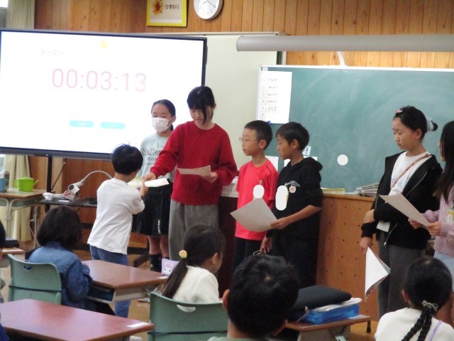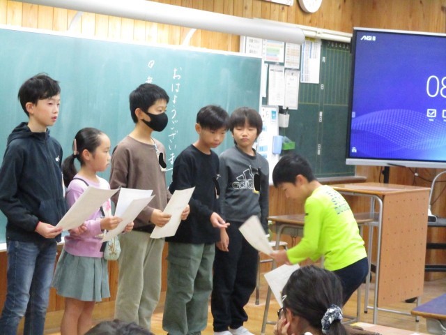 いよいよ来週がなかよし会の本番です。当日に向けて計画・準備・練習をしてきました。今日は、緊張しながら、1~3年生に招待状を渡しに行きました。1学期より少しでもバージョンアップできるように4年生なりに進めてきました。1~3年生が「楽しかった」と言ってくれるように、残り4日間がんばりましょう。