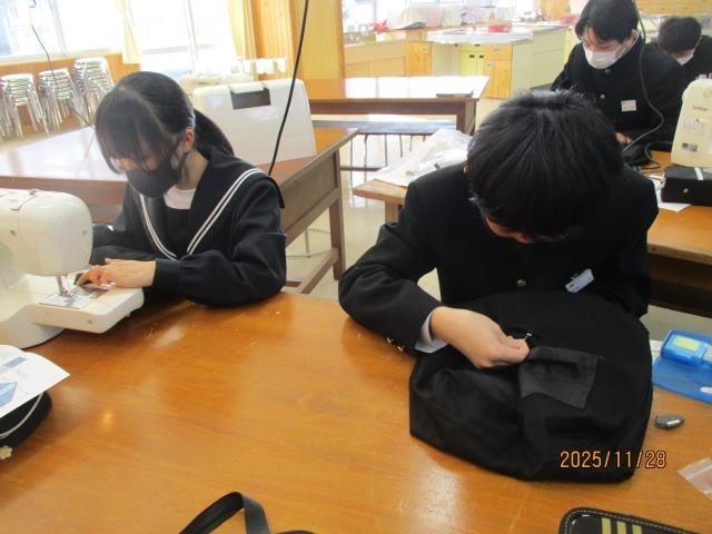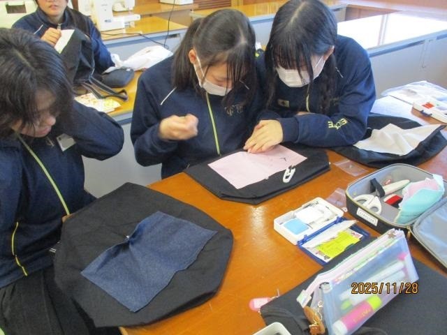 現在カバンづくりを行っています。スナップを付けたり、ミシンを使って縫ったりと作業に取り組みました。