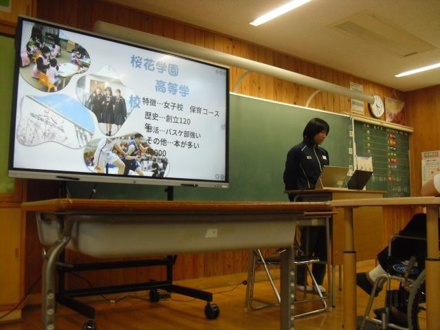 以前「自分の興味・関心のある高校」についてレポートを作成し、本日は調べた高校についての発表会を行いました。