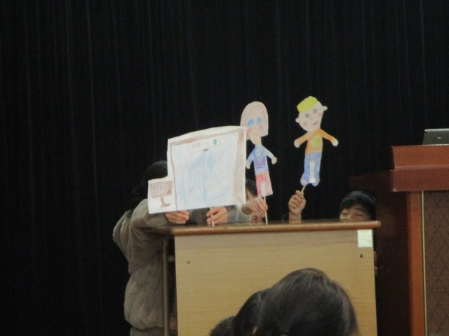 「キラキラわくわく村たんけん発表会」の第2部の写真です。こちらのグループも、ペープサートやクイズを取り入れて、飛島村のステキを工夫して伝えることができました。これからも、飛島村のたくさんのステキを見つけていきたいですね!