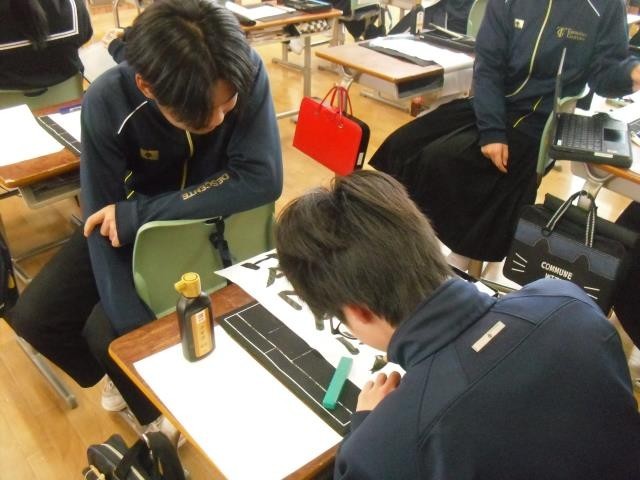 「どんな文字にしようかな」「何を書こう~」生徒たちは悩みながらも楽しそうに活動をしていました。