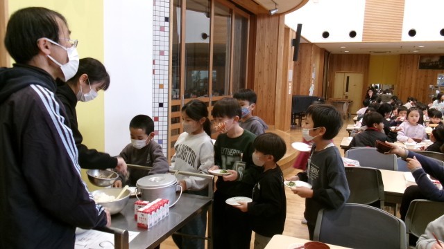 劇の後には、減農薬野菜給食をおかわりする人もたくさんいて、もりもりおいしくいただきました。