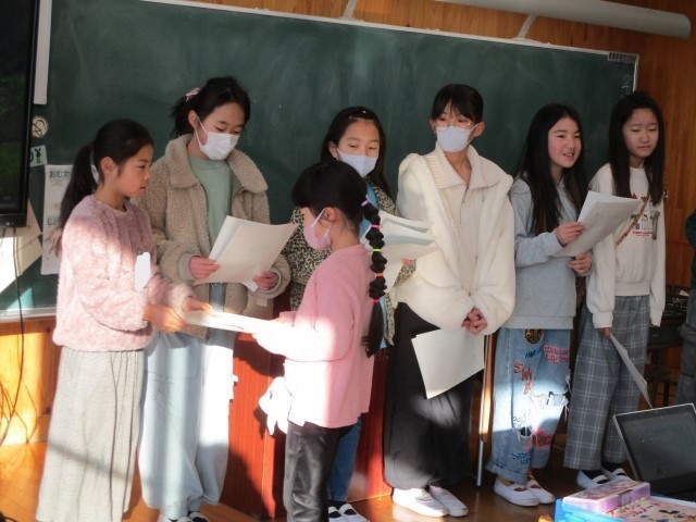 全員の招待状があるか、名前は間違えてないか、みんなでチェックしてから、3日、最後のなかよし会への招待状を渡しに行きました。今、リハーサルをしているところです。1~3年生がスムーズに楽しく遊ぶことができるように改善点を見つけて修正しています。楽しみにしていてください。
