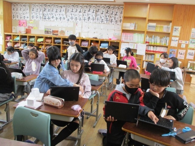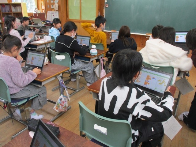 ICT支援員さんにプログラミングを教えていただきました。忍者を増やすプログラムをつくるために、どんな命令が必要かを考えながら操作を進めました。また、条件を変えたときに、すでに作ったプログラムのどの部分の数を変えるとよいかについても考え、修正しました。最後はポケモンのプログラミングで、もう少し条件を増やした場合のプログラムを作成し、困っている子にはできた子が教える姿も見られました。