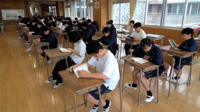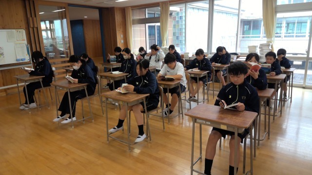 10分間、静かに本を読む7年生の姿勢に、「ほっと」する朝のひと時でした。