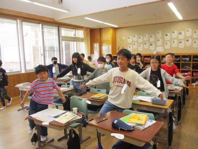 今日は、バースデー係とギネス係の係活動がありました。バースデーは4月生まれの3人にみんなで歌をプレゼント。その後、誕生日の人に関するクイズで盛り上がりました。ギネス係は目をつぶって片足立ちが5分間できるかな?でしたが、バランスを崩さず立ってられる人がいました。どの係もみんなで楽しさを共有するために活動をしたことがすばらしかったです。ずっと続けられるといいですね。