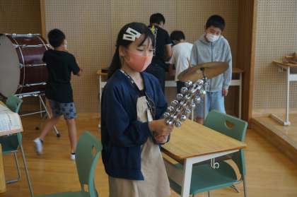 19日(金)『リボンのおどり』を演奏予定の5年生は、担当する楽器を決定する前に色々な楽器の音色や演奏方法について学習しました。見たことはあっても、名前が分からない・・・という楽器もいくつかあったようです。5年生のみなさん、以下の3枚に写っている楽器は分かりますね!!