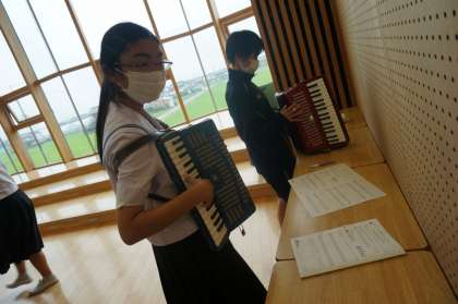 19日(金)8年生の音楽では動機をつくり、変化を楽しみながら8小節の小曲をつくりました。動機を繰り返したり、逆にしたり、シフトを変化したり、それぞれ工夫をこらして初作品を完成させました!完成した曲は木琴やアコーディオン、電子ピアノなどで演奏して確認しました!