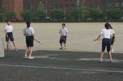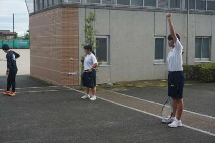 19日(金)夕方から晴れてきたため、テニス部はプロムナードで練習を行いました。密にならないように声をかけあいながら、練習を進める生徒たちの姿が見られました。