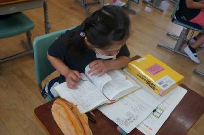 22日(月)3年生は国語の授業で「漢字の音と訓」について勉強しました。国語辞典を活用し、様々な漢字の音読みと訓読み、その意味を確認しました。その後、漢字のミニテストも行いました。