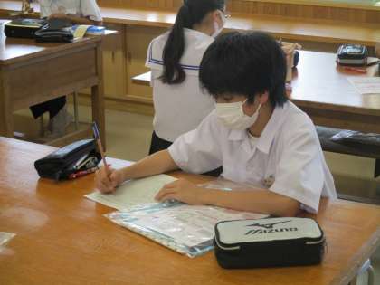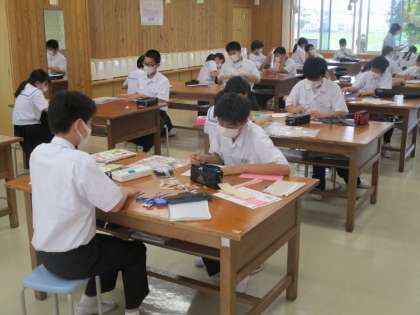 家庭科ではフェルトを使ったポーチ制作に取り組んで
