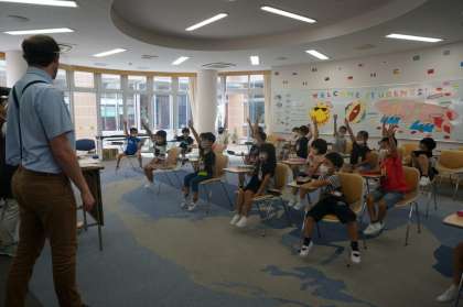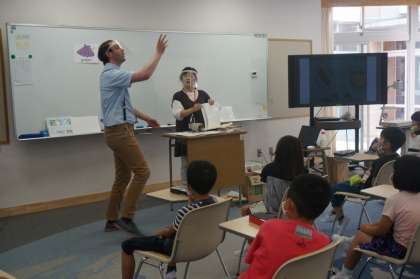 22日(月)外国語活動がありました。今日はALTの先生が、どんなフルーツを食べているのかを当てるゲームをしました。子どもたちは、ALTの先生から目を離しません!「わかった」と元気よく手を挙げ、答えを発表していました。とても盛り上がっていました♪
