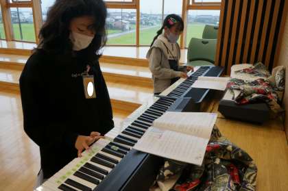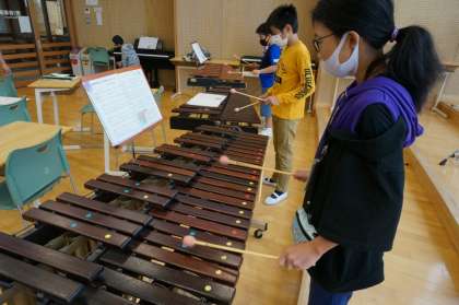 9日(金)音楽の授業で引き続き「キリマンジャロ」の合奏をしました。今日は、個人練習、パート別練習を行った後、合奏の様子を録画しました。後で見直し「打楽器の音が大きい」「自分のだめだった所がわかる」と振り返ることができました。次回もがんばりましょう!!
