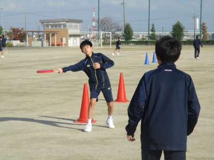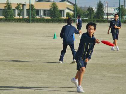 男子はグランドで、フリスビーを使った「アルティメット」と
