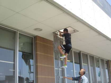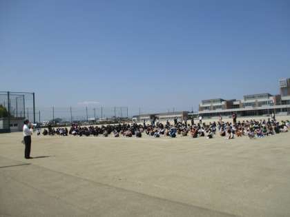 4月12日(火)4時間目に避難訓練を行いました。火災発生を想定して、事前に教室で指導を行い、運動場に全校生徒が避難しました。訓練の後は、教室でタブレットで振り返りをしました。また、6年生は代表生徒が避難梯子を体験して2階から降りました。