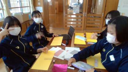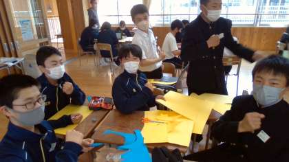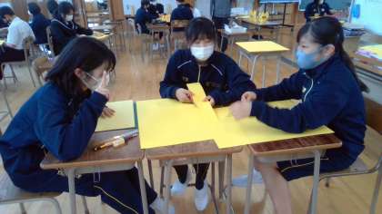 12日の5時間目 8年生の学活の時間は1年生を迎える会で送るプレゼントの準備をしました。