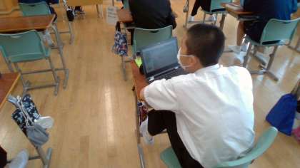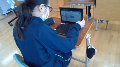 木曜の朝に行っているプログラミング学習での,8年生の様子です。