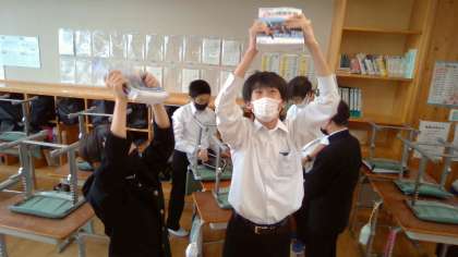 写真は受け取った日の生徒の嬉しそうな様子です。