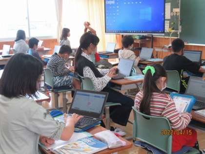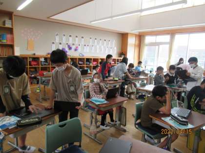 5年生になって、算数はT1の先生が主になって教えてくださいます。今週はすでに5時間もありましたが、「整数と小数」のところをしっかり学習しました。タブレットを使う場面がたくさんあり、どんどん進めることができました。また、早く終わった子は、他の子の丸つけをしたり教えたりして、助け合いながら学び合っています。