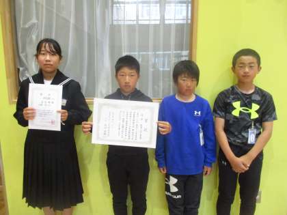 4月18日(月)委員長・学級委員の認証・卓球や軟式野球の大会の表彰を行いました。