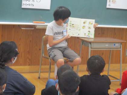 1〜6年生で、図書委員会による読み聞かせを行いました。当日に向けて、図書委員さんはそれぞれ「どんな本がいいかな?」と本を選び、練習をしてきました。