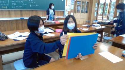 家庭科では、服装について考えました。TPOを意識して服装を選んでいく必要があることがわかりましたね。また、自分に似合う色を見つけるために、仲間同士で話し合いました。自分に似合う色は見つかりましたか?