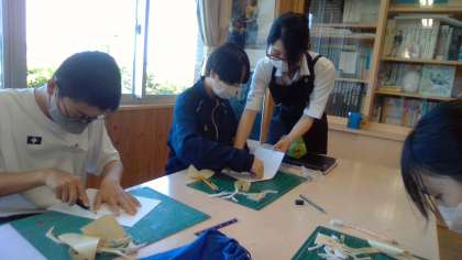 美術では、教育実習生の先生にアドバイスを受けながら、オリジナルのピクトグラムを作成しました。「伝わる」デザインを考えるのは思ったよりも難しいですね。