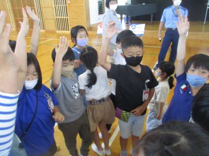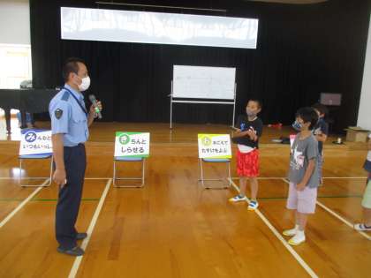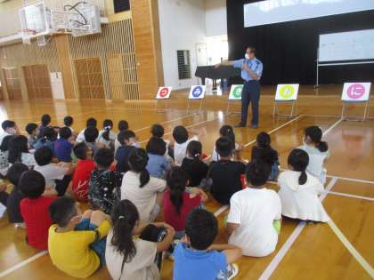 6月7日(火)蟹江警察署ののおまわりさんを講師に招いて防犯教室を行いました。「つ・み・き・お・に」事件に巻き込まれないようにする合言葉を教えていただきました。3年生の様子です。