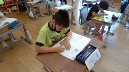 1時間目、A組では書写の時間でした。"よい姿勢"を守りながら、授業を受けています。どんどん、字が上手になっていきますね。