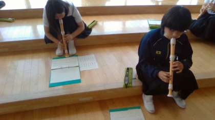 8日(水)音楽の授業があり、始めにリコーダーの練習を行いました。今日からサミングを使って「サムのひとりごと」という曲に挑戦しました。