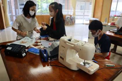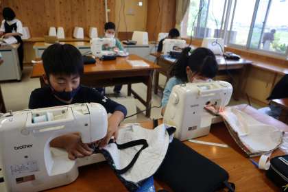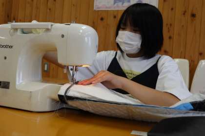 家庭科では、オリジナルトートバッグづくりを行っていています。ミシンを器用に使いながら、イニシャルなどの自分だけの模様を付けています。完成まであと少し!出来上がったものを見ることが楽しみですね!!