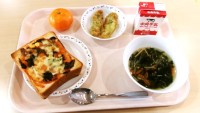 みんなおいしそうに食べています。今日のこんだては、麻婆豆腐、きりぼしバンバンジー、あげぎょうざ、ごはん、牛乳です。麻婆豆腐は辛くなく、コクがあって人気メニューです。たくさん食べて、体も心も大きく成長してくださいね!