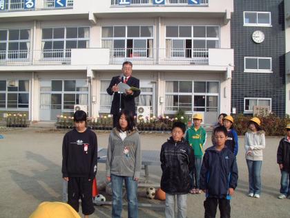 12月1日(日)に愛知万博メモリアル駅伝が開催されます。学校の代表として出場する6年生の4人に対する壮行会が朝礼の中で行われました。精一杯がんばってきてほしいと思います。
