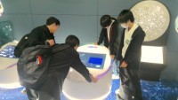 それぞれデザインした図柄をもとに、2時間縫い絞りを行いました。縫ったところ、糸を巻いたところが白くなることをイメージしながら、皆黙々と真剣に縫っていました。どう染め上がるのかワクワクしながら化学の授業へGo!