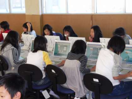 本校では、低学年、中学年、高学年とそれぞれの学年の実態に合わせて、コンピュータを使った学習を行っています。中学年でインターネットを利用しはじめ、調べ学習などに活用していきます。高学年になるにつれて、調べて得た情報の活用法についても学んでいきます。