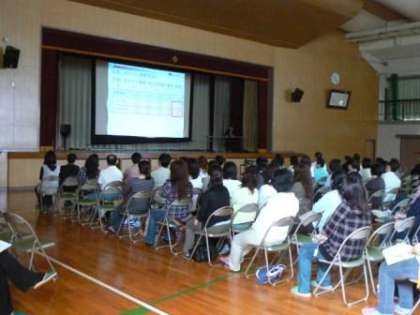 本校では,1学期の父母学級で,保護者を対象に「ネット犯罪対策教室」を開催した。愛知県警のサイバー犯罪対策室より講師を招いた今回は,会場となった体育館に約200名の保護者が集まり,ネット犯罪への関心の高さを感じることができた。保護者からは,「毎年,1年生向けにこういう会を開いてほしい。」,「今後,子どもと携帯電話についての約束事を作っていきたい。」などの感想や要望をいただいた。