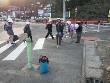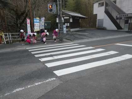 平成15年に当時2年生の児童が大きな交通事故にあってからは、登下校時に子どもたちはヘルメットを着用し、国道や交差点を横断するときには、笛を吹いて横断していることを知らせるようになった。さらに横断後には停車していただいた車に対して「ありがとうございました」と運転者に聞こえるように大きな声でお礼の挨拶をし、お辞儀をしている。朝や夕の通勤や仕事で急いでいる時間帯で、車の運転者も停車するのは気分的にいら立つものだが、子どもたちが挨拶したときにはほほえみが見られる場合が多く、とても和やかで気持ちのいい瞬間である。
