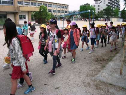 登校中にも、こんなことがありました。1年生がランドセルや手提げ袋が重くて歩くことを嫌がっていると、高学年の児童が荷物を持ってくれたり、手をつないでくれたりしながら、何とか学校まで連れてきてくれていました。それを何日も続けていたそうです。集合場所で気分が悪くなった低学年の児童を高学年の児童が背負って学校まで連れてきてくれることもありました。荷物はみんなで手分けして運んでくれました。