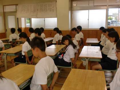 ・今日のお話の後、目を閉じて、担当教師が伝えようとしたことについて真摯に考えたり、投げ掛けられた問題提起について、自分の経験や考えを想起したりしながら、30秒間の黙想を行う。