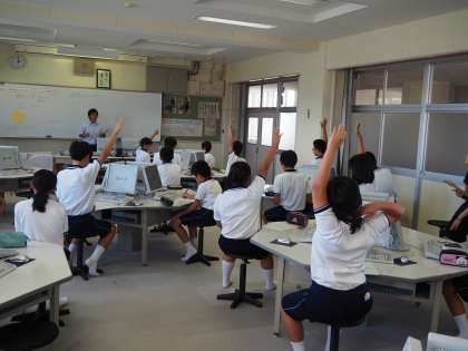 コンピュータを使った実践でしたが、導入では、岩手県総合教育センターが開発した教材「スタモバ」を使い、文字だけのコミュニケーションを疑似体験をさせた。生徒は文字だけのコミュニケーションの面白さやその利便性について、相手の表情を描きながら楽しそうに活動していました。